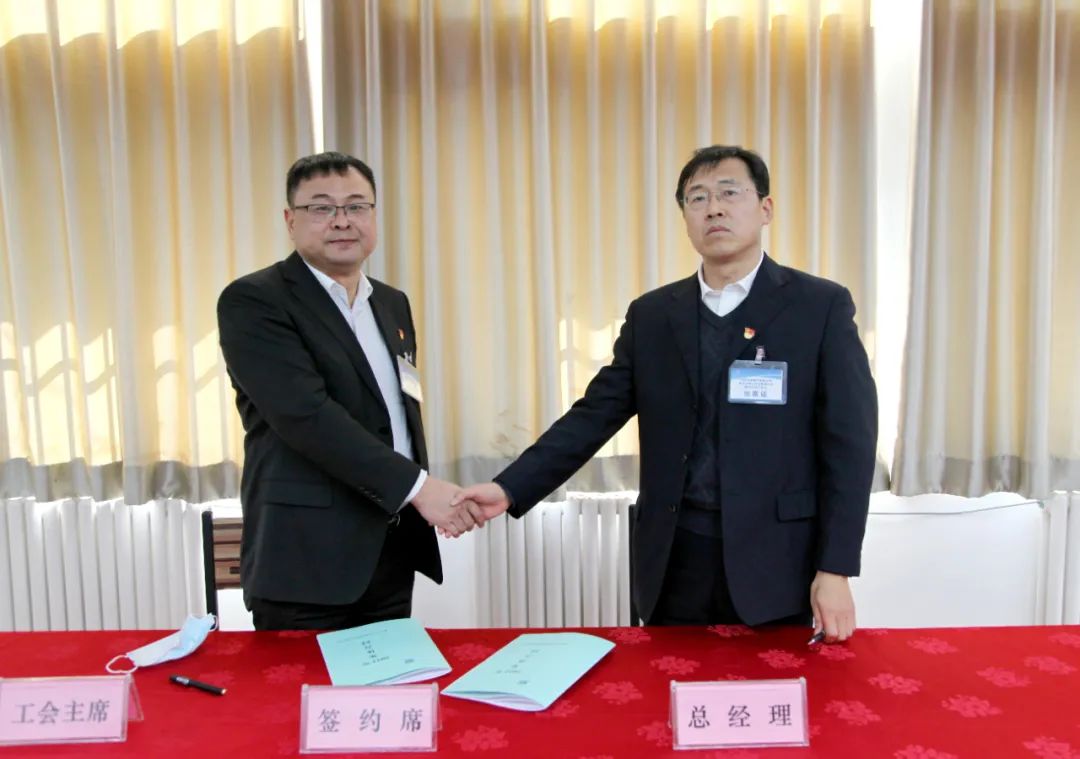 總經(jīng)理郭有勁、工會(huì)主席劉紅光分別代表公司行政、工會(huì)簽訂了《2022年集體合同》。郭有勁代表公司行政與各生產(chǎn)所負(fù)責(zé)人簽訂了《2022年生產(chǎn)經(jīng)營(yíng)目標(biāo)責(zé)任書(shū)》《安全質(zhì)量環(huán)保目標(biāo)管理責(zé)任書(shū)》。